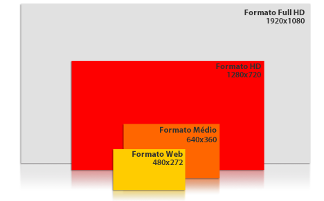 Os formatos mais comuns de exportação são: HD (1280 x 720), Médio (640 x 360) e Formato Web (480 x 272). Uma solução para cada necessidade.